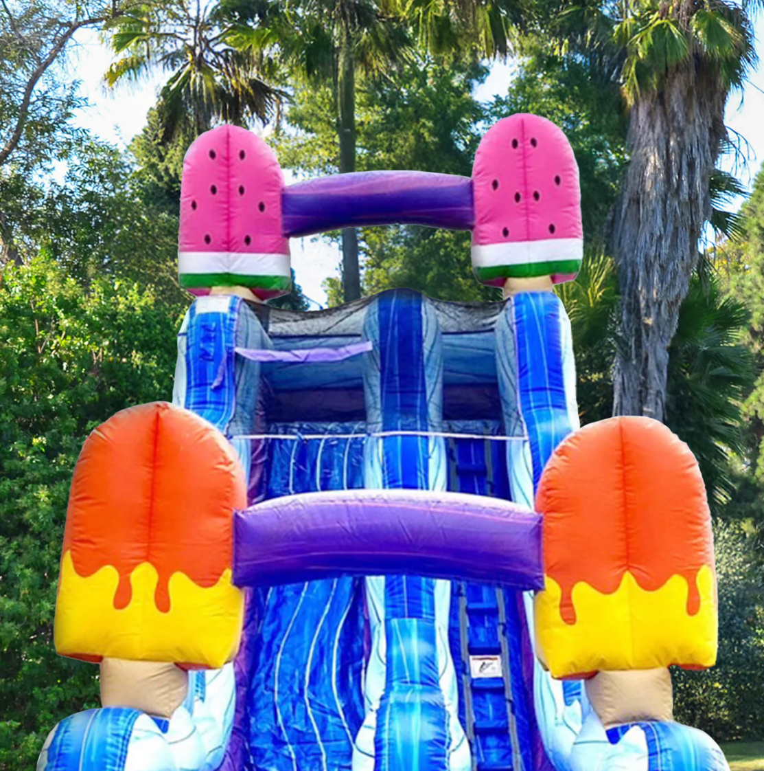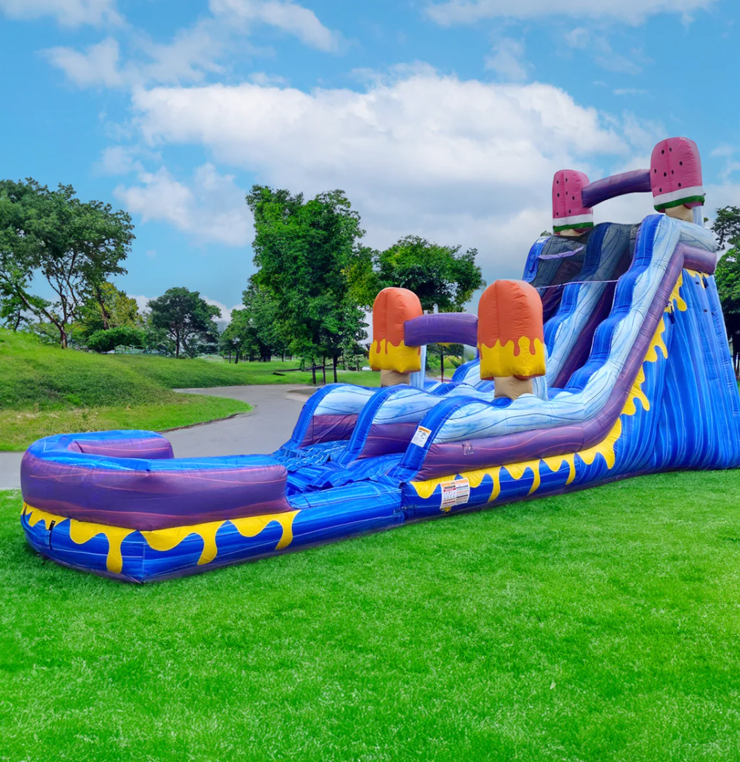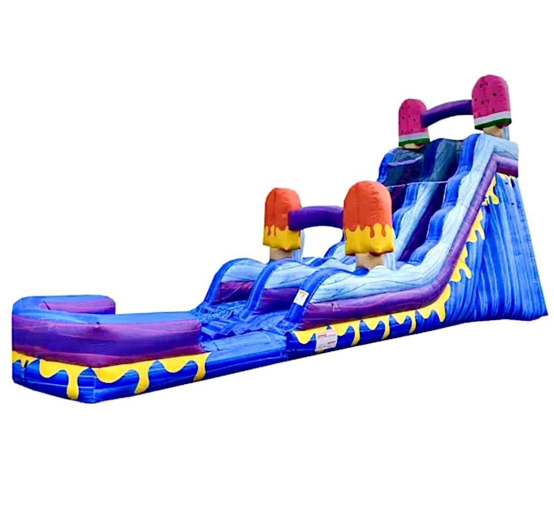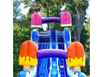The Ice Pops 19 Ft Slide is for all ice cream lovers! Tasty ice pops sit at the entrance and top of the slide. It's the tastiest and coolest slide you'll find!